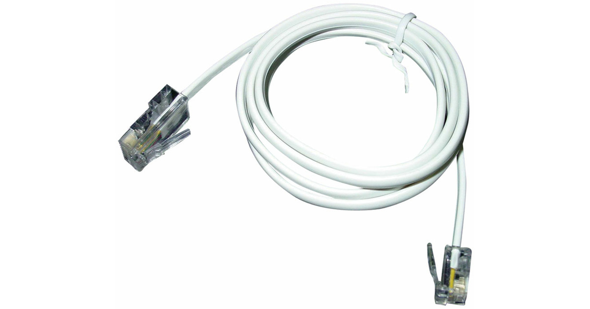 This cable enables you to connect an ordinary analogue telephone with an RJ11 connector to an RJ45 wall socket. All four pins in the RJ11 connector are wired straight through to the four middle pins in the RJ45 connector. Some ADSL service providers use RJ11 connectors for the wall socket and RJ45 connectors in their equipment. This cable can be used for this type of connection.